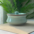 Expertly crafted in handi in teal colorline finish with brown line on rim and brown specks, this 6.5" Handi is the ideal size for serving satisfying family meals. Made from durable ceramic material, it offers both style and functionality for your kitchen. Elevate your dining experience with this must-have cooking essential.
