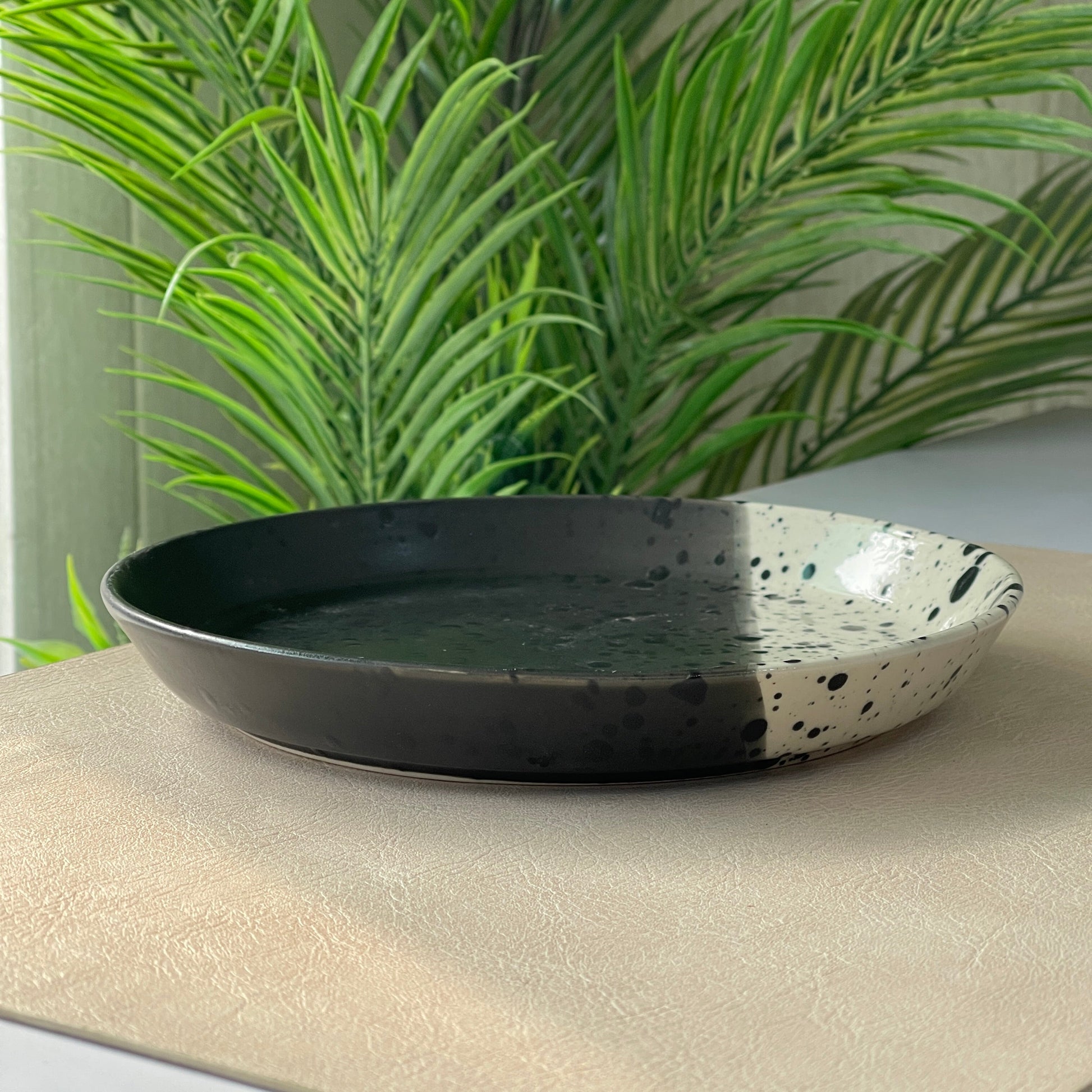 This 8 inch Coupe Classic Plate in eclipse series. Made of durable ceramic, it is perfect for using it as a quarter plate and it adds a touch of elegance to any dining experience. Handmade for a unique and artisanal touch.