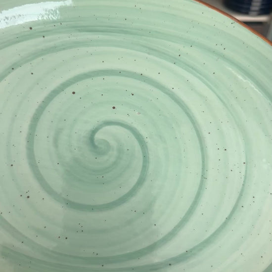 Expertly handcrafted, this Leftover 13" rimless rice dish is a stylish addition to any kitchen. Its sleek Teal Colorline, accented by brown line on rim, add a touch of elegance to your dining table. Made from high-quality ceramic, this dish is both durable and beautiful.
