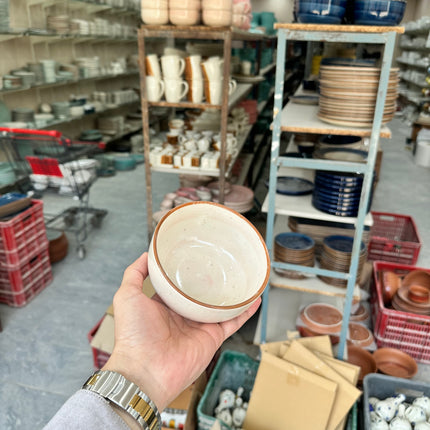 This 5 inch Single Serving bowl is a versatile addition to any kitchen. Handmade from durable ceramic material, it features a beautiful Pink Colorline with brown line on edge and brown specks, making it perfect for single servings. With its unique design and quality craftsmanship, this bowl is both functional and stylish.
