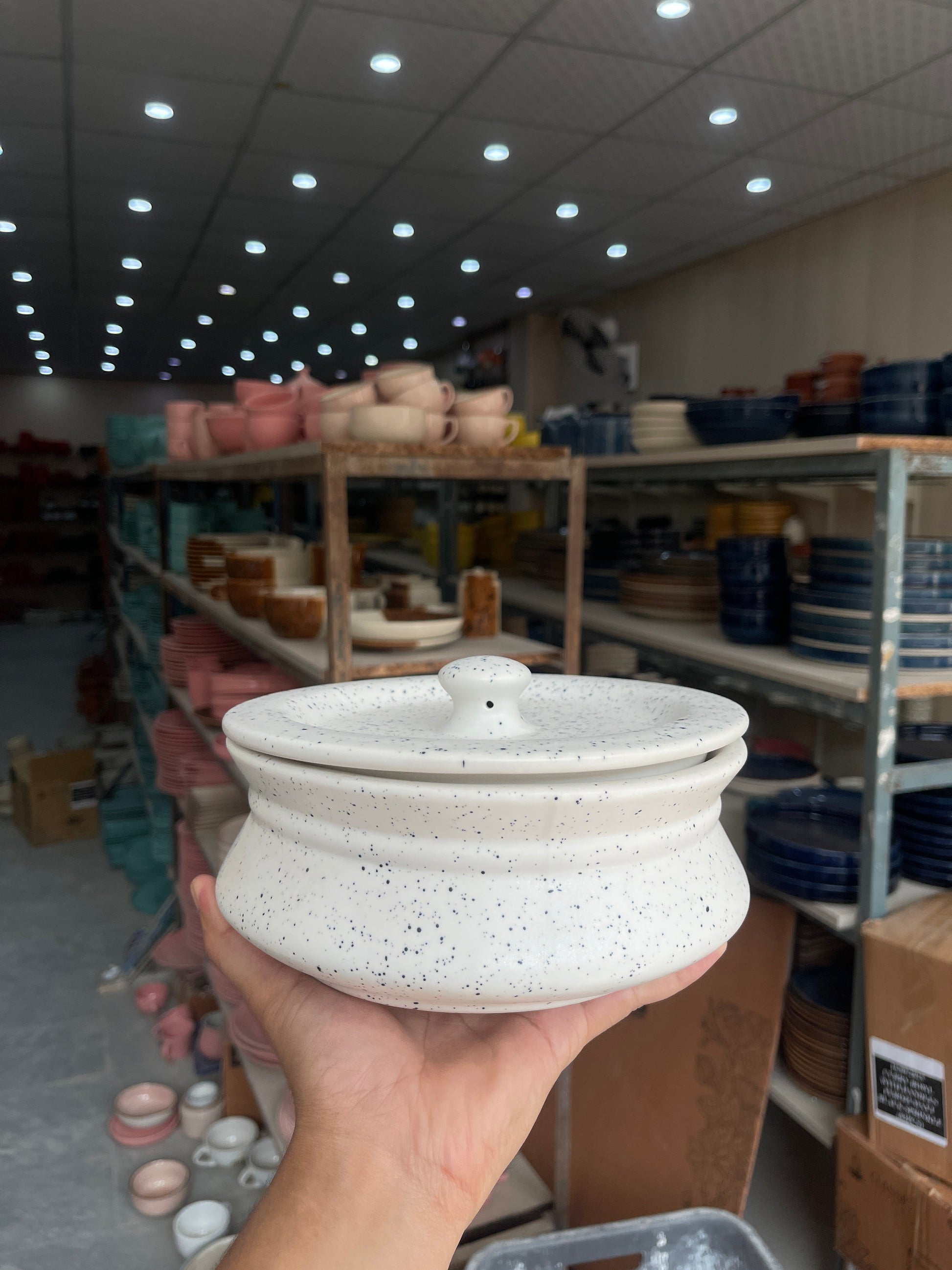 Leftover 8 inch Handi ( White Matte with Black Specks )